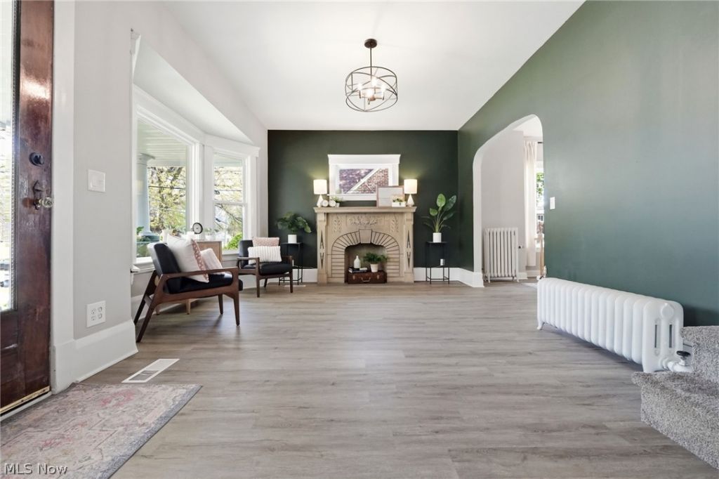 Welcome home to this beautifully updated Cape Cod in Cleveland's highly desirable Kamm's Corners! A charming covered front porch invites you to enjoy peaceful mornings before stepping inside. As you enter, soaring 9-foot ceilings and gorgeous new flooring draw you into the main level. The spacious living room features a large bay window and a classic decorative fireplace. This space flows effortlessly into the formal dining room, perfect for hosting loved ones. You'll also find a versatile bonus room, ideal for a home office, music room, or playroom, ?and a convenient half bath. The heart of the home is the large, completely remodeled kitchen, featuring pristine white soft-close cabinetry, stunning granite counters, a cozy eating nook, and gleaming stainless steel appliances. Head upstairs to discover three inviting bedrooms and a beautifully appointed full bathroom. The primary bedroom serves as a true retreat, boasting the rare luxury of his-and-hers walk-in closets. Journey down to the fully finished basement, offering tons of additional living space. Whether you envision a man-cave, a movie room, or the ultimate hangout spot, this flexible space delivers, complete with a second full bathroom and laundry area. Step out the back door to your covered rear porch, overlooking an incredibly rare find in the city: a sprawling privacy-fenced lot measuring over a quarter-acre! An oversized driveway leads to a 2-car detached garage, providing ample space for parking and projects. Enjoy peace of mind with extensive 2021 updates throughout: a newer roof, dual-zoned forced air A/C, windows, water heater, driveway, garage doors, flooring, fixtures, kitchen, and baths. Located minutes from the Cleveland Metroparks and Cleveland Hopkins International Airport, with quick access to local shops, dining, and highways. Don't miss your opportunity to make this your next home. Call today to schedule a showing with your favorite fedora-wearing REALTOR®!